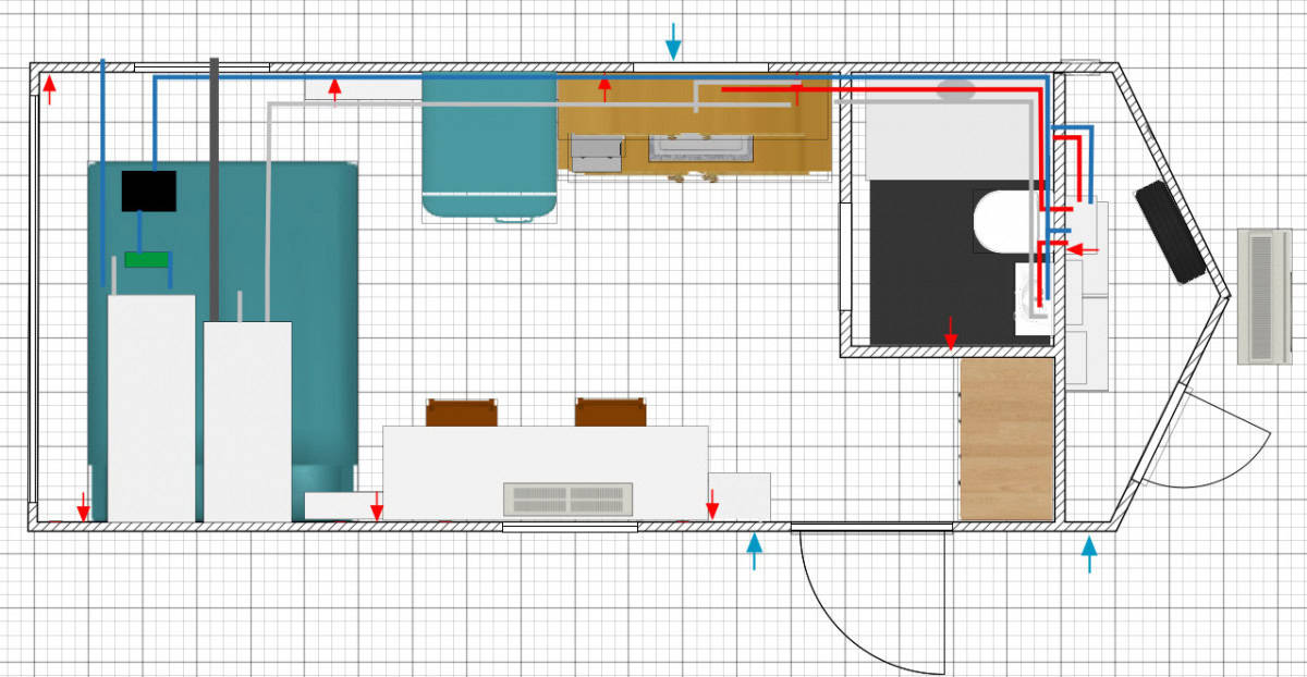 These are the planned “rooms” in our cargo trailer starting from the V nose: Utility room Bathroom Foyer Kitchen Dining