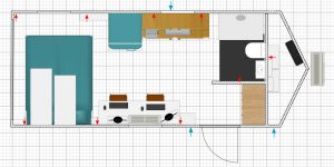 These are the planned “rooms” in our cargo trailer starting from the V nose: